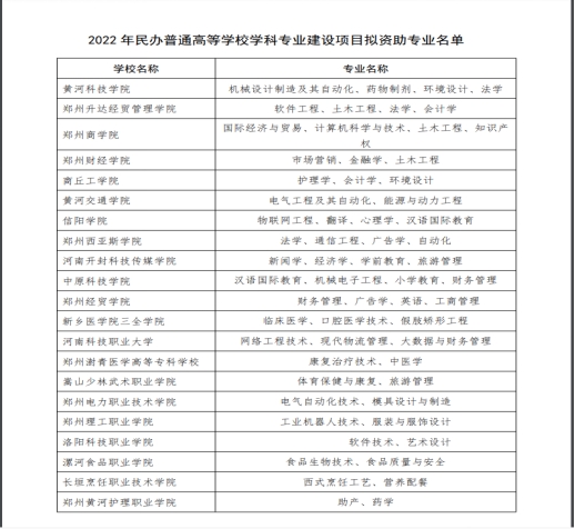 2021年11月18日,河南省教育廳官網(wǎng)(jyt.henan.gov.cn)公示,9001cc金沙現代物流管理專(zhuān)業(yè)和大數據與財務(wù)管理專(zhuān)業(yè)同黃河科技學(xué)院、鄭州升達經(jīng)貿管理學(xué)院和鄭州商學(xué)院等21個(gè)學(xué)校62個(gè)專(zhuān)業(yè)擬確定為2022年民辦普通高等學(xué)校學(xué)科專(zhuān)業(yè)建設資助項目。