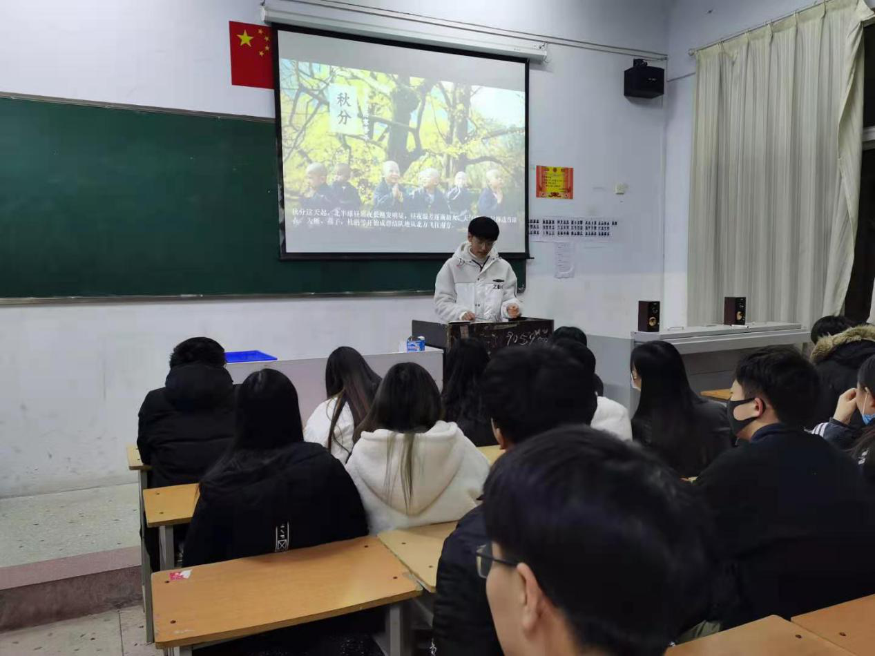 班會(huì )開(kāi)始,各班團支書(shū)首先向同學(xué)們介紹了二十四節氣是什么,讓同學(xué)們對二十四節氣有了初步了解,并且引導大家一起朗讀二十四節氣詩(shī)歌。緊接著(zhù),各班團支書(shū)通過(guò)ppt的形式為同學(xué)們詳細的介紹了二十四節氣,如立春是二十四節氣之首,“立春一日,百草回芽”,盡管?chē)篮娜兆硬⑽措x去,但溫暖不會(huì )太遠,一候東風(fēng)解凍,二候蟄蟲(chóng)使振,三候魚(yú)陟負冰,大自然萬(wàn)物復蘇。還有芒種,一年當中最繁忙的時(shí)節到來(lái),逢此時(shí)節,梔子花開(kāi),麥黃梅熟,仲夏開(kāi)始,應注意防暑降溫,及時(shí)補水。除此之外,還有清明,立夏,夏至,立秋,秋分,立冬,冬至,大寒等等,各班團支書(shū)對此都做出了詳細的介紹。而現在正處于寒冷的冬天,冬天也是疫情重現的時(shí)候,因此對于防控疫情,同學(xué)們應做出有效的疫情防范。