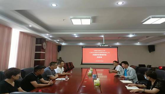 產(chǎn)教融合謀發(fā)展,校企合作譜新篇。7月28日下午,由江蘇京訊遞供應鏈管理有限公司馮幸濤經(jīng)理一行,與河南科技職業(yè)大學(xué)副校長(cháng)馬金嶺、招生就業(yè)處處長(cháng)張冬梅、9001cc金沙院長(cháng)王成、書(shū)記王力偉等在學(xué)校綜合樓9樓會(huì )議室召開(kāi)產(chǎn)教融合工作座談會(huì )。