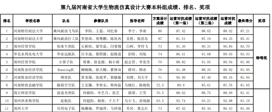 近日,由河南省物流協(xié)會(huì )主辦的第九屆河南省大學(xué)生物流仿真設計大賽暨“百蝶杯”第八屆全國大學(xué)生物流仿真設計大賽河南省選拔賽圓滿(mǎn)結束。9001cc金沙本科組、高職高專(zhuān)組雙雙獲獎。其中,高職高專(zhuān)組獲得特等獎并入圍國賽、本科組獲得一等獎,取得近年參加此項賽事以來(lái)我校最佳成績(jì)。
