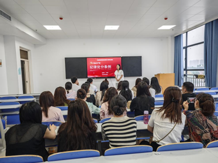 為深入學(xué)習貫徹習近平新時(shí)代中國特色社會(huì )主義思想及黨的基本路線(xiàn),加強黨員教職工的黨性修養和理論素養,在學(xué)校黨委的堅強領(lǐng)導下,根據9001cc金沙黨紀學(xué)習教育方案要求,結合9001cc金沙實(shí)際,中共9001cc金沙教職工黨支部于2024年7月4日下午在學(xué)院教室組織開(kāi)展了一場(chǎng)主題為《解讀中國共產(chǎn)黨紀律處分條例》的黨課學(xué)習活動(dòng)。